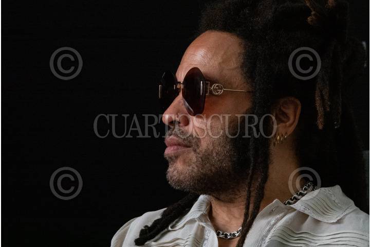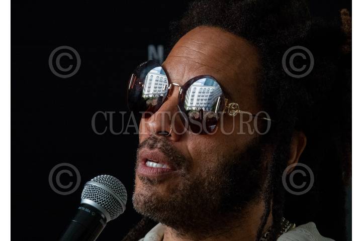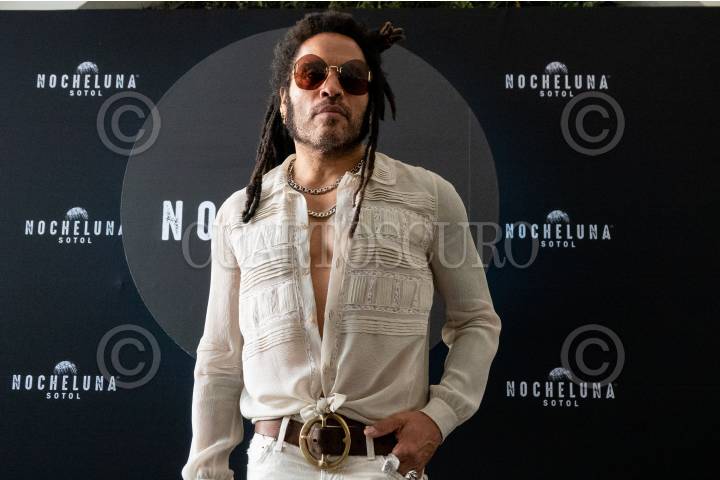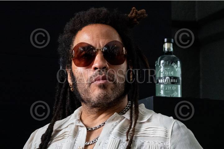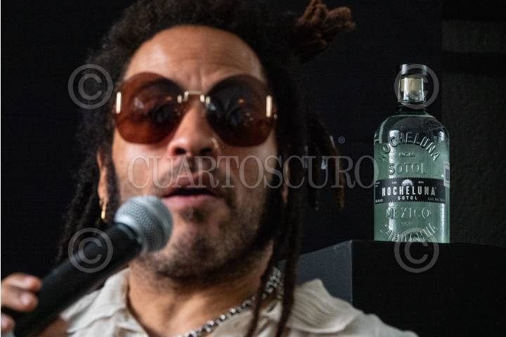 El cantante Lenny Kravitz posa tras la conferencia en que presentó su marca de Sotol "NocheLuna" en el Hotel Four Seasons de Reforma.