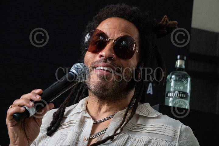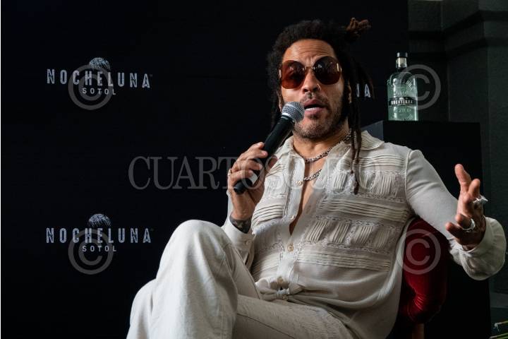 El cantante Lenny Kravitz durante la conferencia en que presentó su marca de Sotol "NocheLuna" en el Hotel Four Seasons de Reforma.