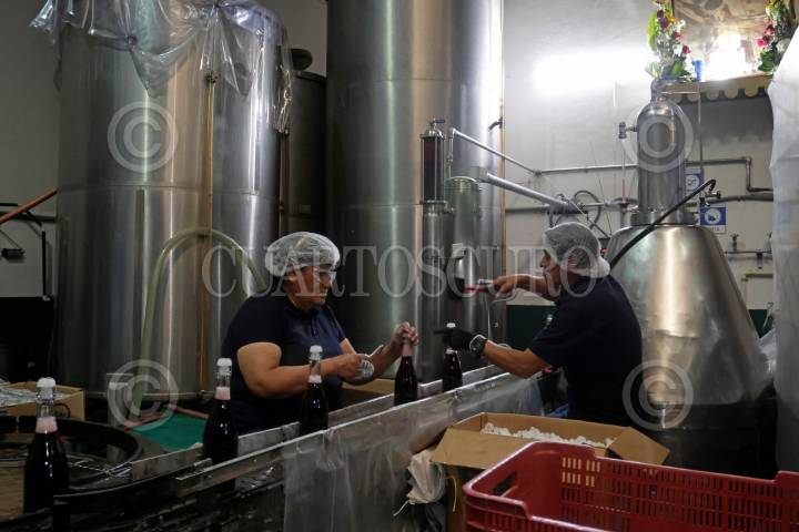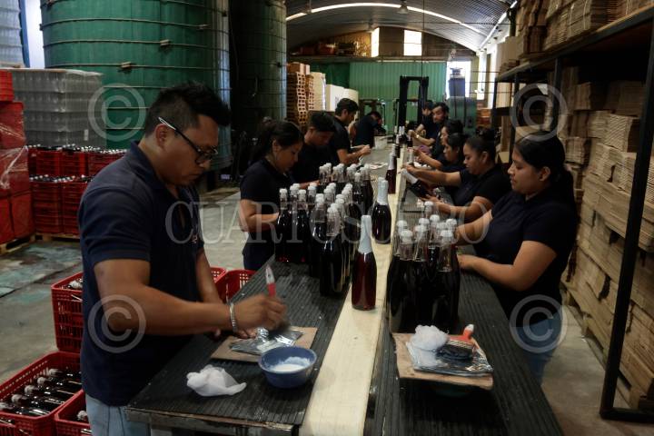 HUEJOTZINGO, PUEBLA, 31DICIEMBRE2023.- Trabajadores de la fabrica Maifrut elaboran Sidra Artesanal en el municipio de Huejotzingo, cuna de dicha bebida que es solicitada para los brindis de Año Nuevo. FOTO: MIREYA NOVO/CUARTOSCURO.COM