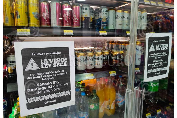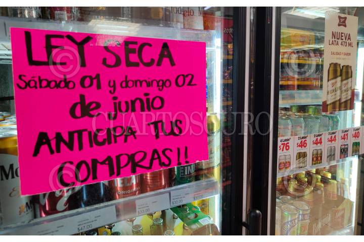 CIUDAD DE MÉXICO, 30MAYO2025.- A partir del sábado 31 de mayo y hasta el último minuto del 1 de junio entrará en vigor la "ley seca" con motivo de las elecciones del Poder Judicial. La medida se aplicará a establecimientos mercantiles como: tiendas de autoservicio; vinaterías, tiendas de abarrotes, supermercados y tiendas departamentales.