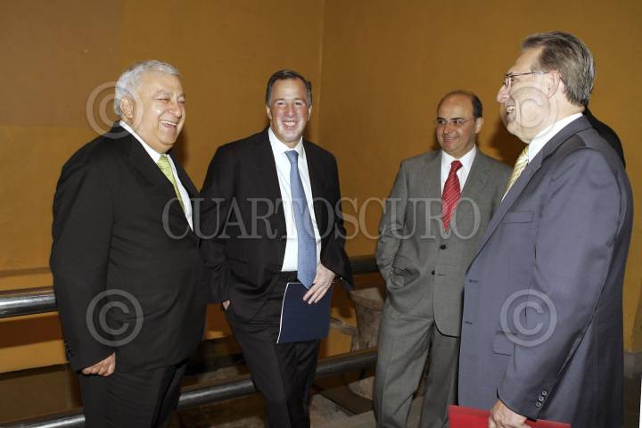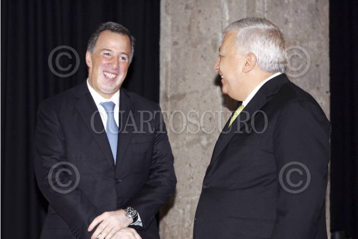 MÉXICO, D.F., 28JUNIO2013.- Emilio Chuayffet, secretario de Educación y José Antonio Meade, secretario de Relaciones Exteriores durante la despedida de la generación 2013 de mexicanos becados "FulBright-Garcia Robles" FOTO: CUARTOSCURO.COM