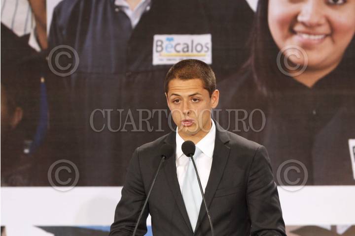 MÉXICO, D.F., 25MAYO2012.- Javier Henández "Chicharito", durante la ceremonia en la cual se entregaron diplomas a jóvenes que concluyeron sus estudios impulsados por el programa "Bécalos". FOTO: GABINO ACEVEDO/CUARTOSCURO.COM