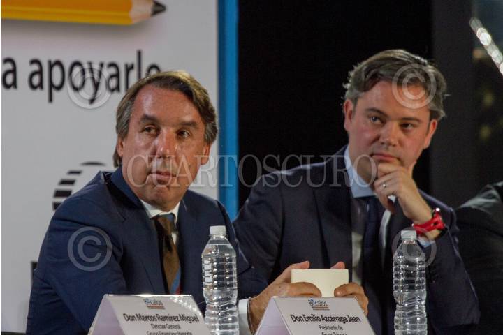 CIUDAD DE MÉXICO, 24MAYO2017.- Emilio Azcárraga, presidente del grupo Televisa Aurelio Nuño Secretario de Educación Publica encabezaron la premiación del programa Bécalos que se encarga de apoyar a jóvenes para que no abandonen sus estudios atreves de donaciones en cajeros automáticos. FOTO: ANTONIO CRUZ /CUARTOSCURO.COM