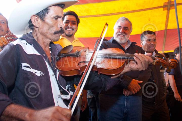AMANALCO DE BECERRA, ESTADO DE MÉXICO, 21JUNIO2011.- Alejandro Encinas Rodríguez, candidato de la coalición “Unidos Podemos Más” para la gubernatura del Estado de México, se reunió con productores de trucha donde firmo el pacto ecológico. Simpatizantes del candidadoto de la coalición escuchan su discurso a un costado de la carpa. FOTO: GUILLERMO PEREA/CUARTOSCURO.COM