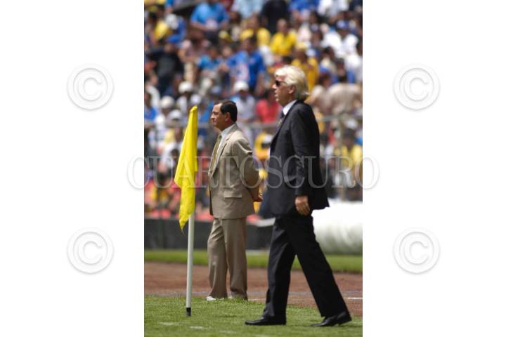 México D. F. ENERO 2004.- Hugo Sánchez director técnico de Pumas y su homólogo Leo Beenhakker del América, en el torneo de clausura 2004. FOTO: Sandra Perdomo/CUARTOSCURO.COM
