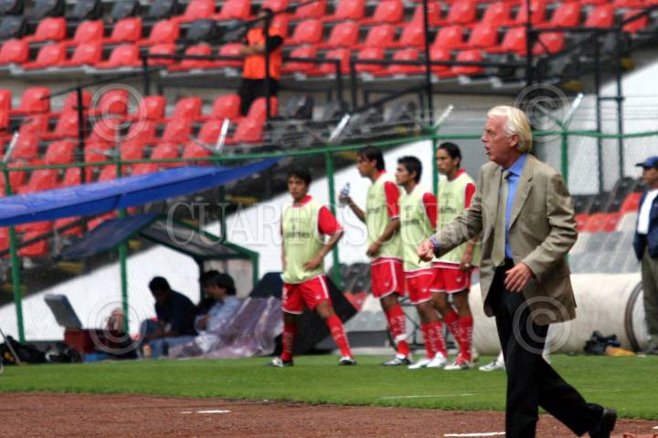 Los entrenadores Leo Beenhakker y Enrique Meza del Cruz Azul observan a sus jugadores. FOTO: Germán Romero/CUARTOSCURO.COM