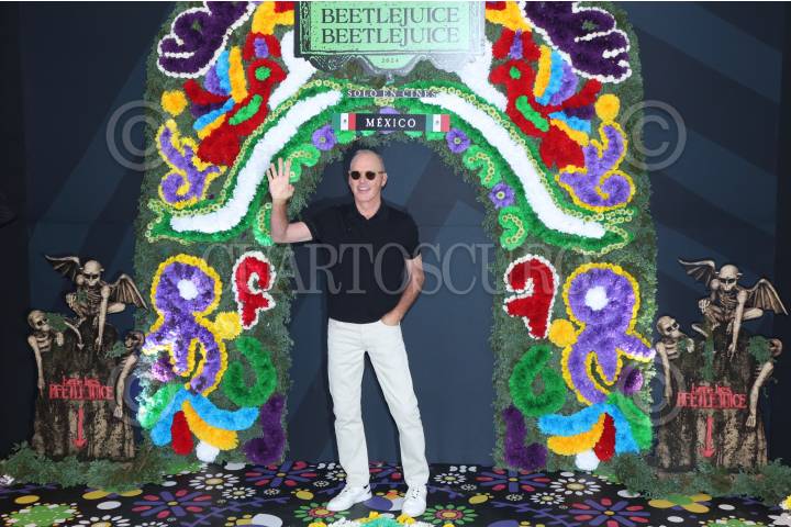 NAUCALPAN, ESTADO DE MÉXICO, 14AGOSTO2024. El actor Michael Keaton durante el Fan Event y alfombra blanco y negro de la película “Beetlejuice, Beetlejuice”, en su gira de promoción mundial, previo a su estreno en cines. FOTO: EDGAR NEGRETE LIRA/CUARTOSCURO.COM