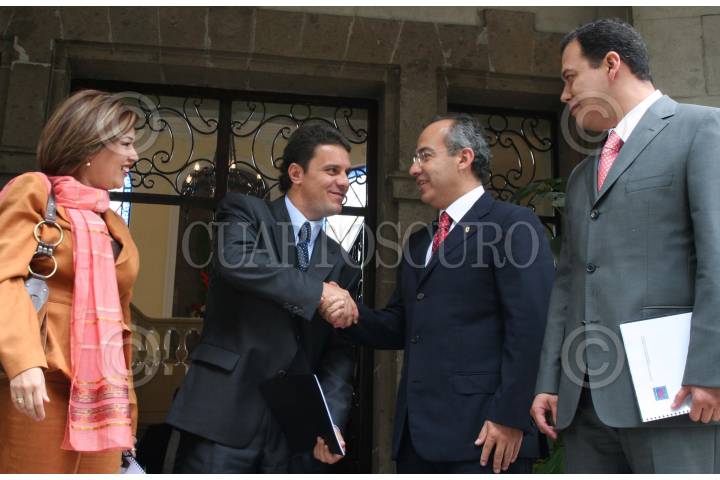MEXICO, D.F.20SEPTIEMBRE2006.- El presidente electo de México, Felipe Calderón Hinojosa recibió en su casa de tarnsición a Alberto Begne, presidente nacional del Partido Alternativa Social Democrata y Campesina. FOTO: ALFREDO GUERRERO/CUARTOSCURO.COM