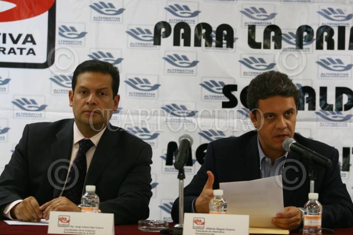 MÉXICO, D.F, 29ENERO2008.- Jorge Carlos Días Cuervo Diputado de Alternativa acompañado po Alberto Begné Presidene del partido, durante la conferencia de prensa, donde convocaron a la primera asamblea de jovenes a nivel licenciatura, en donde los temas seran regulación de marihuana y regulación del proceso legislativo de la ALDF. FOTO: SASHENKA GUTIERREZ/CUARTOSCURO.COM