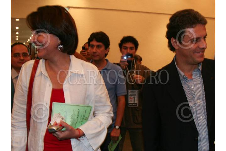 MÉXICO, D.F. 12JUNIO2007.- Patricia Mercado presentó la fundación Voz Alternativa, Alberto Begné, presidente de el partido Alterntiva Social Demócrata a su llegada. FOTO: PAOLA HIDALGO/CUARTOSCURO.COM