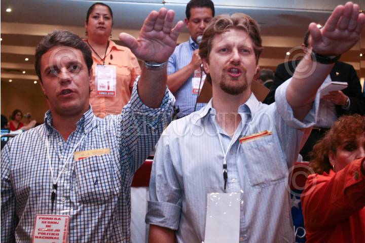 MÉXICO D.F., 13JULIO2008.- Luciano Pascoe y alberto Begne Vicepresidente y Presidente del Partido Social Democrata toman protesta despúes de haber salido triunfadores en las elecciones de su partido. FOTO: SÁSHENKA GUTIÈRREZ/CUARTOSCURO.COM