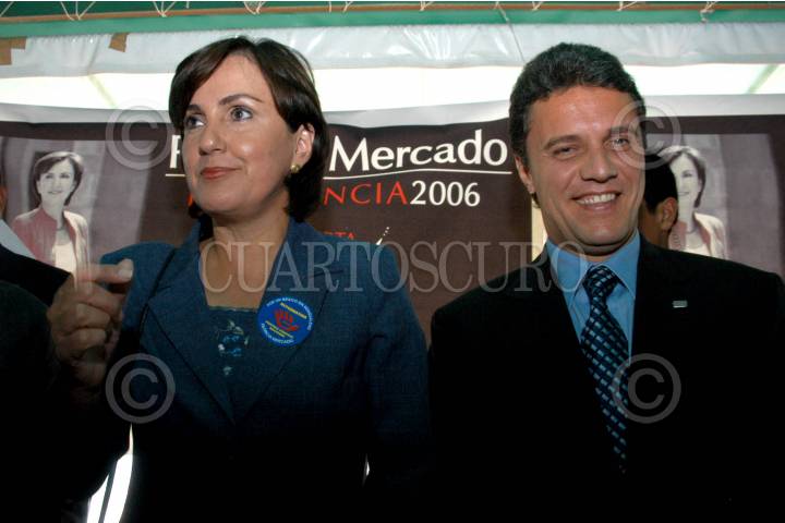 MÉXICO D.F. 19 ABRIL 2006.- Patricia Mercado, candidata a la presidencia de la república, por el partido Alternativa junto con Alberto Begnie, presidente del partido, dio a conocer en conferencia de prensa lo que sera la nueva etapa de su campaña electoral. FOTO: Guillermo Perea/ CUARTOSCURO.COM