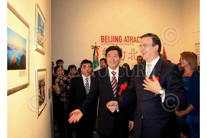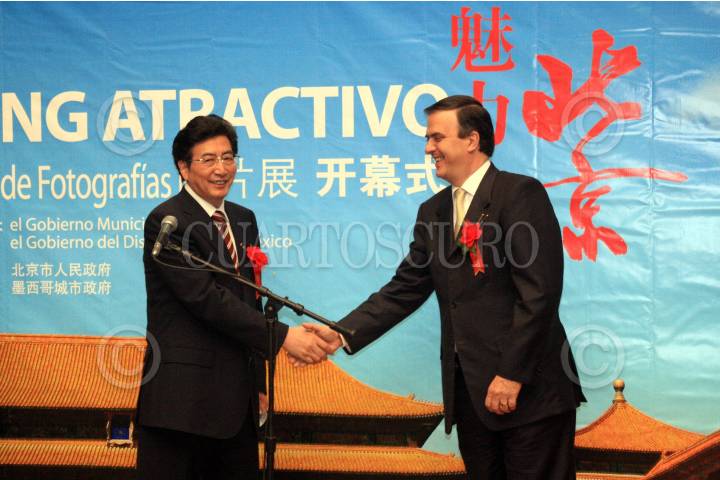 MEXICO, D.F., 19OCTUBRE2009.- Marcelo Ebrard Casaubon, Jefe de Gobierno capitalino y Guo Jinlong, Alcalde de la ciudad de Beijing, inauguraron la muestra "Beijing Atractivo", la cual consta de 80 fotografías de esta ciudad. FOTO: CUARTOSCURO.COM