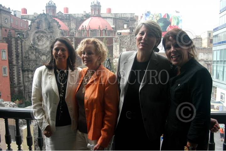 MÉXICO D.F. 15AGOSTO2007.-Alejandra Gilling, Cristina Pandal de Alaman de la fundación del Centro Histórico, Dolores Beistegui y Rosalva Garza de la mencinada fundación, al termino de su conferencia donde dieron a conocer los pormenores de la exposición "Viva Frida". FOTO: GUILLERMO PEREA/CUARTOSCURO.COM