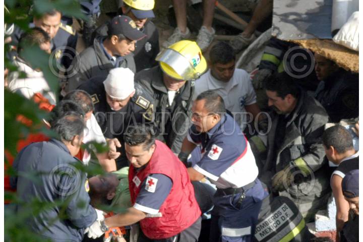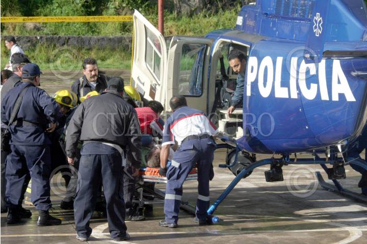 MEXÍCO. D.F. 12SEPTIEMBRE2007.-En la colonia Belen de las Flores parte de un cerro se desmorono gracias a un deslave callendo sobre una vivienda, socorristas y bomberos rercataron a un hombre de entre los escombros el cual fue trasladado en helicoptero a un hospital en el cual fallecio al llegar. FOTO:PEDRO MARRUFO/CUARTOSCURO.COM
