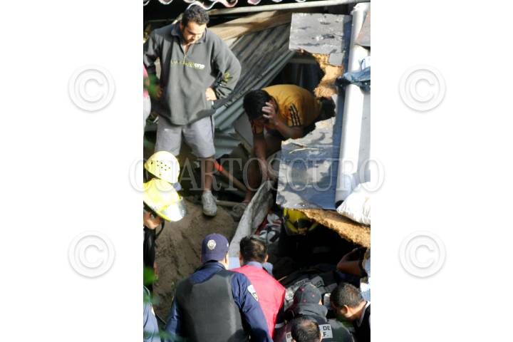 MEXÍCO. D.F. 12SEPTIEMBRE2007.-En la colonia Belen en Alvaro Obregon de las Flores parte de un cerro se desmorono gracias a un deslave callendo sobre una vivienda, socorristas y bomberos rescatarón a un hombre de entre los escombros el cual fue trasladado en helicoptero a un hospital en el cual fallecio al llegar. FOTO:PEDRO MARUFO/CUARTOSCURO.COM