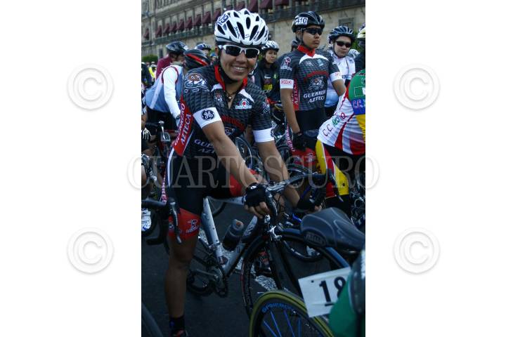 MÉXICO, D.F. 11NOVIEMBRE2007.- La medallista Belén Guerrero, perticipó en la gran carrera ciclista, que tuvo lugar en el Zócalo Capitalino. FOTO: PAOLA HIDALGO/CUARTOSCURO.COM