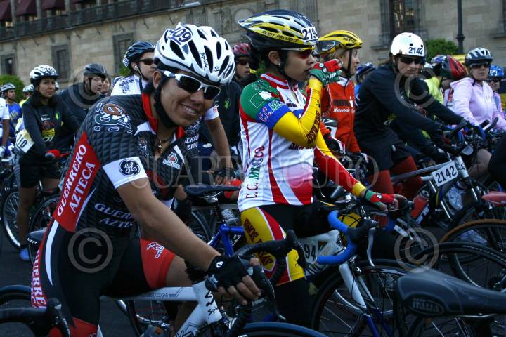 MÉXICO, D.F. 11NOVIEMBRE2007.- Las medallistas Belén Guerrero y Jesica Jurado perticiparon en la gran carrera ciclista, que tuvo lugar en el Zócalo Capitalino. FOTO: PAOLA HIDALGO/CUARTOSCURO.COM