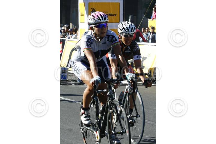 MÉXICO, D.F. 11NOVIEMBRE2007.- Las medallistas Nancy Contreras y Belen Guerrero participaron en la gran carrera ciclista, que tuvo lugar en el Zócalo Capitalino. FOTO: PAOLA HIDALGO/CUARTOSCURO.COM