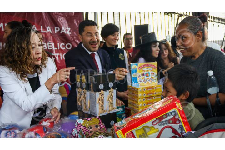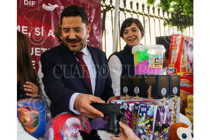 En el atrio de la Catedral Metropolitana, se realizó el programa Sí al Desarme, sí a la Paz; programa que busca que la gente no tenga armas en sus casas. Hoy niños entregaron sus juguetes bélicos por didácticos. Martí Batres, encabezó el evento.