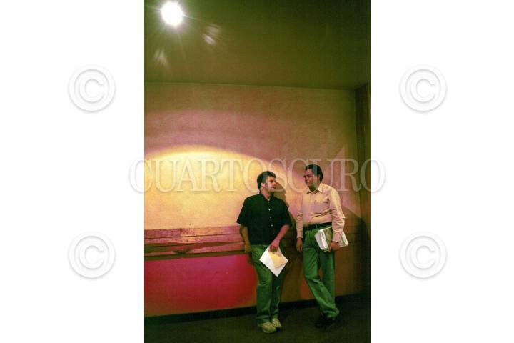 Fernando Belauzaran y René Arce delegado de Iztapalapa, conversan antes del inicio de los trabajos de la Asamblea de Delegados del Congreso Nacional del PRD. FOTO: Victoria Valtierra/CUARTOSCURO.COM