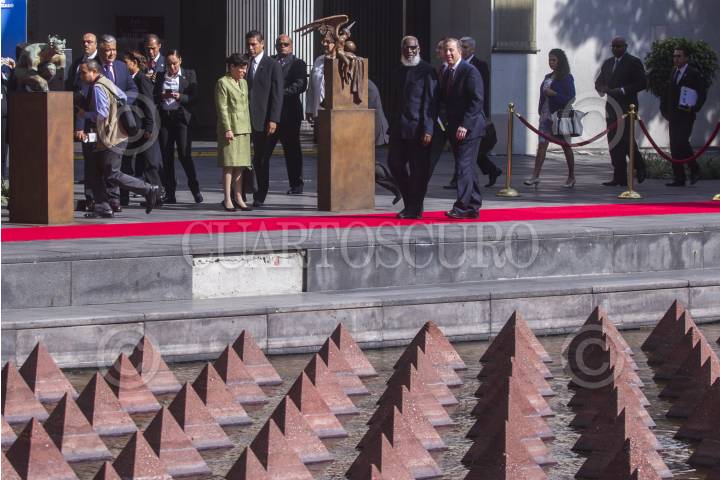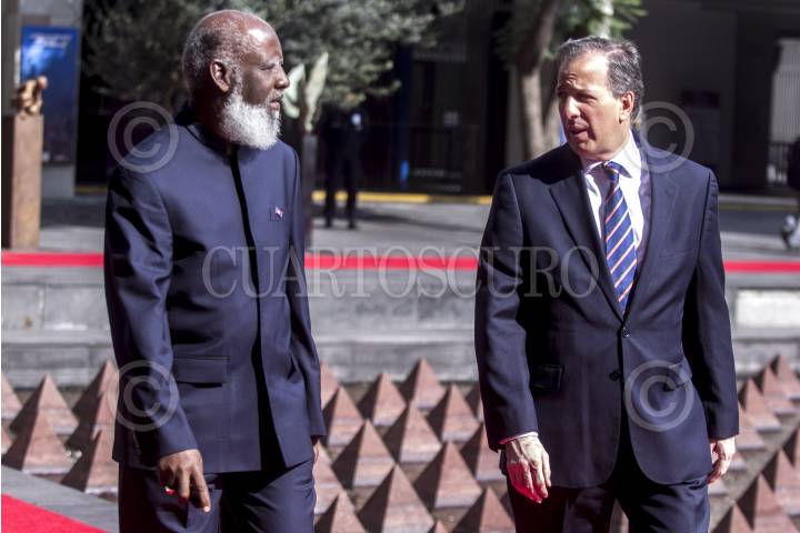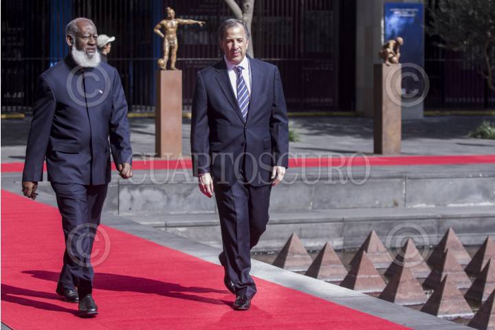 MÉXICO, D.F., 20JULIO2015.- Wilfred Peter Elrington, Ministro de Asuntos Exteriores de Belice junto a José Antonio Meade, Secretario de Relaciones Exteriores de México durante su llegada para la reunión que mantuvieron en la Chancillería. FOTO: ENRIQUE ORDÓÑEZ /CUARTOSCURO.COM