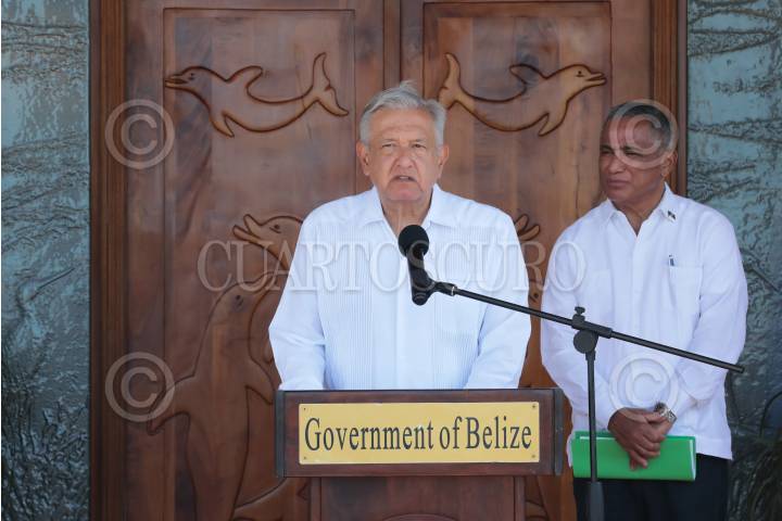 Andrés Manuel López Obrador y John Briceño durante la visita del mandatario mexicano a Belice para la firma del acuerdo del programa Sembrando Vida.