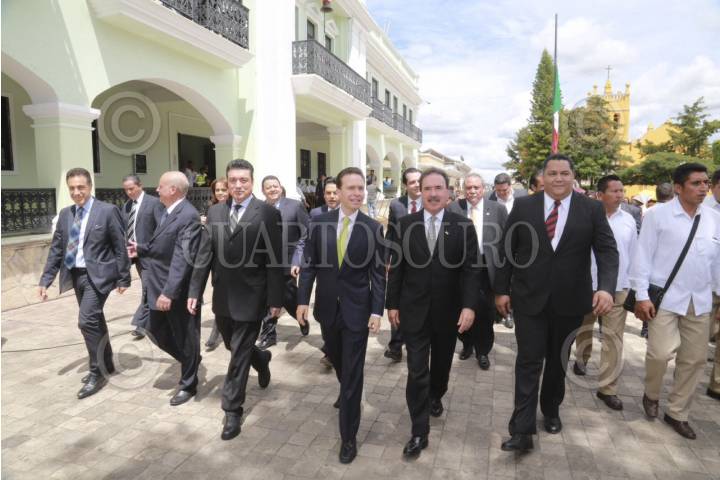 COMITÁN, CHIAPAS, 07SEPTIEMBRE2013.- El gobernador del estado, Manuel Velasco, acompañado del senador Emilio Gamboa Patron, coordinador de los senadores del PRI, asistieron a la ceremonia por el centenario luctuoso de don Belisario Domínguez FOTO: CUARTOSCURO.COM