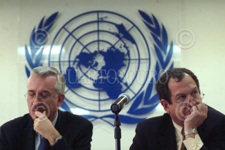 MEXICO, D.F. 11OCTUBRE2004.- La organización de las Naciones Unidas Para la Agricultura y la Alimentación (FAO) con sus representantes Antonio Sanchez Díaz (SEDESOL) y Norman Bellino (FAO) hablaron sobre la seguridad alimentaria en México. FOTO: Iván Stephens/CUARTOSCURO.COM
