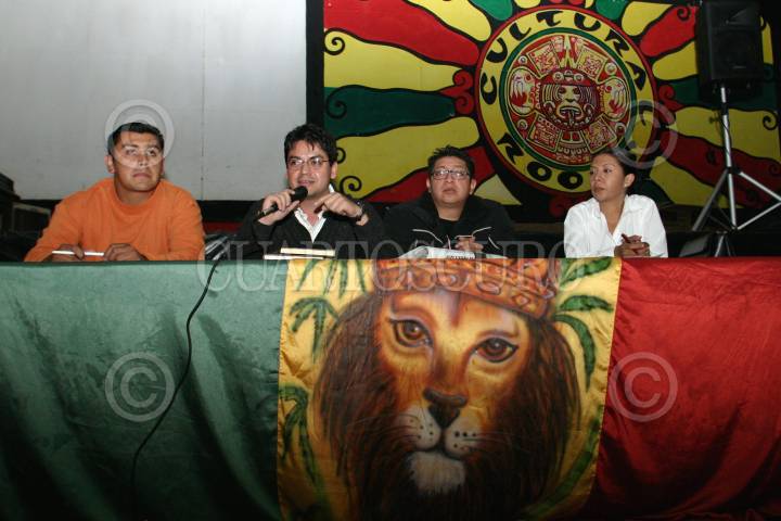 MEXICO, D.F., 18MAYO2006.- Alejandro Pacheco Belmont, jovenes de la Redes Ciudadanas, Cesar León, Jóvenes con AMLO y Diana Soriano, producción, ofrecieron una conferencia de prensa para dar a conocer los pormenores del AMLO Rock Festival que se realizará en la explanada del Monumento a la Revolución. FOTO: Moisés Pablo/CUARTOSCURO.COM