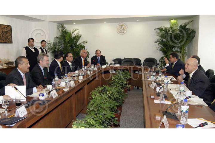 MÉXICO, D.F., 01MARZO2007.- Los ministros José de Jesus Gudiño, Guillermo Ortíz Mayagoitia, y José Ramón Cosio, se reunierón con los coordinadores de los partidos en el Senado, Santiago Creel, Manlio Fabio Beltroes, y Carlos Navarrete para ser entrega del libro blanco del Poder Judicial de la Federación. FOTO:CESAR SANCHEZ/CUARTOSCURO.COM