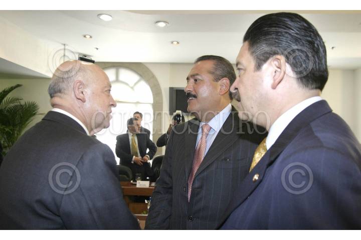 MÉXICO, D.F., 03MARZO2007.- El ministro presidente de la Suprema Corte de Justicia Guillermo Ortíz Mayagoitia junto con los senadores Manlio Fabio Beltroes y Carlos Navarrete para ser entrega del libro blanco del Poder Judicial de la Federación, en las instalaciones de la Camara del Senado. FOTO:CESAR SANCHEZ/CUARTOSCURO.COM