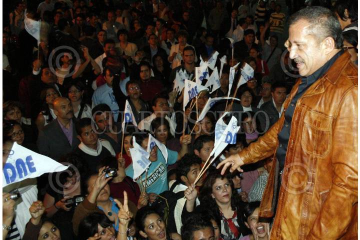 PUEBLA, PUEBLA,11SEPTIEMBRE2009.- Este día el Dr. Enrique Agüera Ibáñez se registró ante la Comisión Electoral como candidato a Rector de la Benemérita Universidad Autónoma de Puebla para el periodo 2009-2013. Ante miles de estudiantes convocó a mantener la defensa de la universidad pública. FOTO: FRANCO/CUARTOSCURO.COM