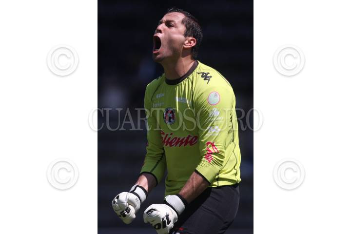 PUEBLA, PUEBLA, 27FEBRERO2011.- El equipo universitario Lobos BUAP, sufrió un descalabro tras ser vencidos 1 gol contra 2 ante la visita de los Xoloscuintles de Tijuana en el estadio Cuauhtémoc, juego correspondiente a la jornada 9 del torneo clausura 2011 de la liga de ascenso. En la imagen: el guardameta Adrián Zermeño, celebra la primera anotación del equipo Xoloscuintles. FOTO: FRANCISCO GUASCO/CUARTOSCURO.COM