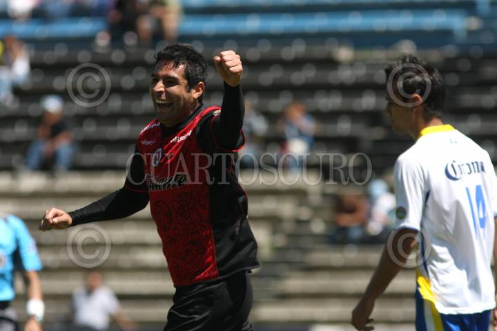 PUEBLA, PUEBLA, 27FEBRERO2011.- El equipo universitario Lobos BUAP, sufrió un descalabro tras ser vencidos 1 gol contra 2 ante la visita de los Xoloscuintles de Tijuana en el estadio Cuauhtémoc, juego correspondiente a la jornada 9 del torneo clausura 2011 de la liga de ascenso. En la imagen: el delantaro Luis Orozco, celebra la segunda anotación a favor de los Xoloscuintles. FOTO: FRANCISCO GUASCO/CUARTOSCURO.COM