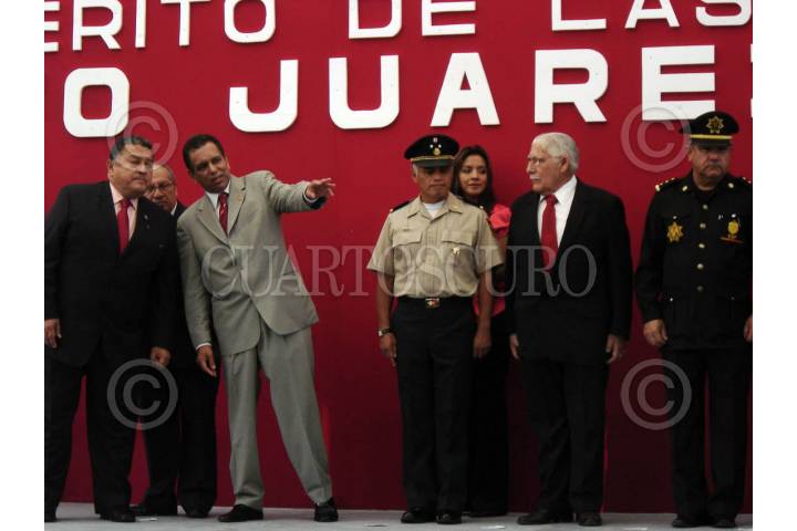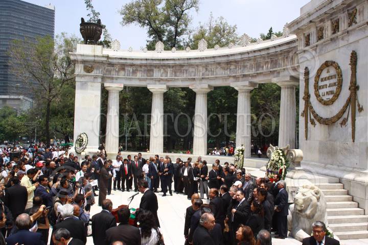 MÉXICO, D.F., 18JULIO2009.- Fernando Gómez-Mont, Secretario de Gobernación, montó una guardia de honor en el Hemiciclo a Juárez, en conmemoración del CXXXVII Aniversario luctuoso del Benemérito de las Americas, Benito Juárez. En la imágen, Andrés Sánchez Juárez, tataranieto de don Benito Juárez, Fernando Gómez-Mont, Adela Vélez Obregón, Chozna de don Benito Juárez y Daniel Cabeza de Vaca, Subsecretario de Asuntos de Jurídicos y Derechos Humanos de la Secretaría de gobernación. FOTO: CUARTOSCURO.COM