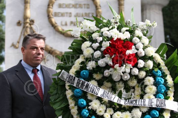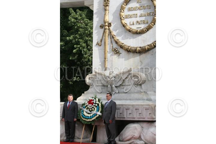 MÉXICO, D.F., 20OCTUBRE2008.- Felipe Pérez Roque, Canciller de la República de Cuba, en visita oficial a nuestro país, realizó un guardia de honor y coloco una ofrenda floral en el Hemiciclo al Benemérito de las Américas, Benito Juárez. FOTO: GUILLERMO PEREA/CUARTOSCURO.COM
