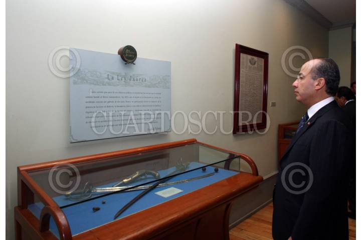 MÉXICO, D.F., 21MARZO2009.- Felipe Calderón Hinojosa realizo un recorrido en Palacio Nacional donde se encuentran objetos del Benemérito de las américas Benito Juárez, esto previo a la ceremonia realizada con motivo de su CCIII Natalicio. FOTO: ALFREDO GUERRERO/CUARTOSCURO.COM