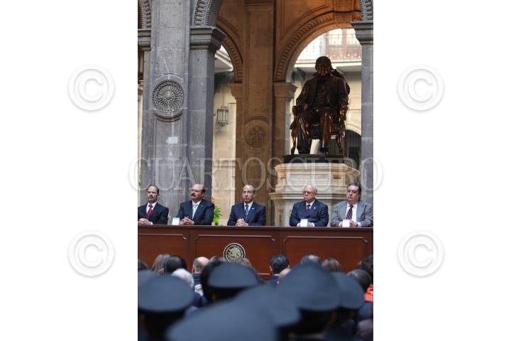 XALAPA, VERACRUZ, 18JULIO2007.- En el parque Juárez se realizó la conmemoración del 135 Aniversario Luctuoso del Benemérito de las Américas, Benito Juárez. El gobernador Fidel Herrera, acompañado de su gabinete, encabezó la ceremonia, y mandó un mensaje en contra de los gobernantes que entregan los recursos del pueblo a intereses extranjeros. FOTO: JORGE VALDÉS/CUARTOSCURO.COM