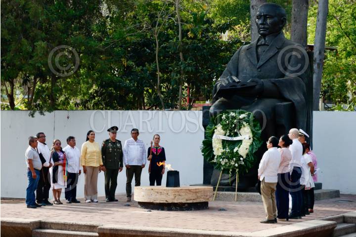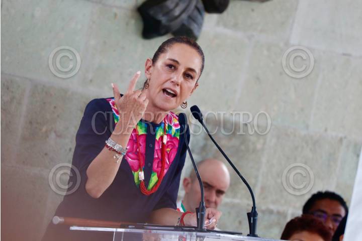 GUELATAO DE JUÁREZ, OAXACA, 21MARZO2025.- La presidenta de la República Claudia Sheinbaum Pardo presidió el homenaje por el 219 aniversario del natalicio de Benito Juárez en la comunidad serrana de Guelatao de Juárez, Oaxaca, lugar en donde nació el Benemérito de la Américas. Acompañada del gobernador del estado, Salomón Jara Cruz y funcionarios federales y estatales, así como autoridades de comunidades serranas, elogió el legado del oaxaqueño quien dijo estaría orgulloso de la próxima elección popular de integrantes del Poder Judicial. Además recalcó la soberanía del país y su defensa haciendo eco de la frase emblemática de Juárez: “Entre los individuos como entre las naciones unidas, el respeto al derecho ajeno es la paz”.  Durante el acto un grupo de integrantes de la Sección 22 de la Coordinadora Nacional de Trabajadores de la Educación (CNTE) mostraron pancartas y gritaron consignas contra la Ley del ISSSTE.  FOTO: CAROLINA JIMÉNEZ/CUARTOSCURO.COM