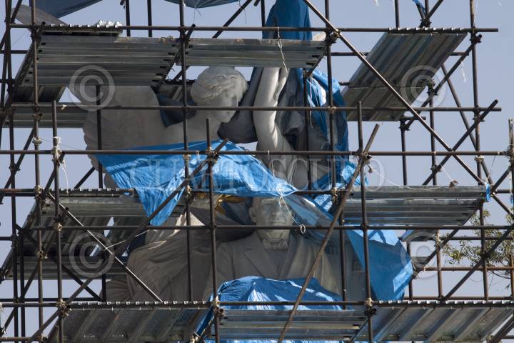 MÉXICO, D.F., 19OCTUBRE2012.- El Benemérito de las Américas luce envuelto en medio de plásticos en el Hemiciclo a Juárez de la Alameda Central. Este parque esta siendo sometido a una remodelación mayor. FOTO: MOISÉS PABLO /CUARTOSCURO.COM