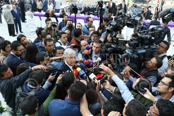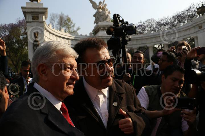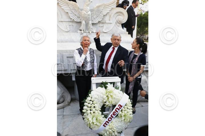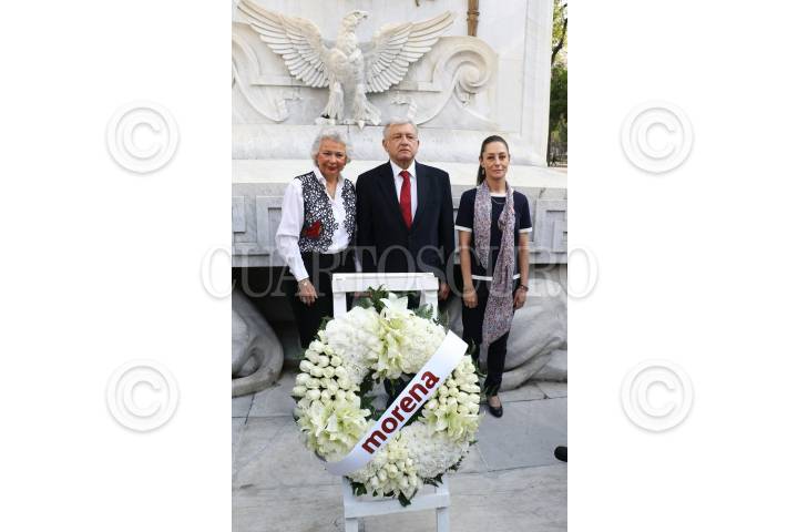 CIUDAD DE MÉXICO, 21MARZO2018.-  Andres Manuel Lopez Obrador candidato de MORENA a la presidencia de la república, montó una guardia de honor en el Hemiciclo a Juarez acompañado de la ex ministra de la SCJN Olga Sanchez Cordero y Claudia Sheinbaum, candidata de MORENA a la gubernatura de la Ciudad de Mexico. FOTO: SAÚL LÓPEZ /CUARTOSCURO.COM