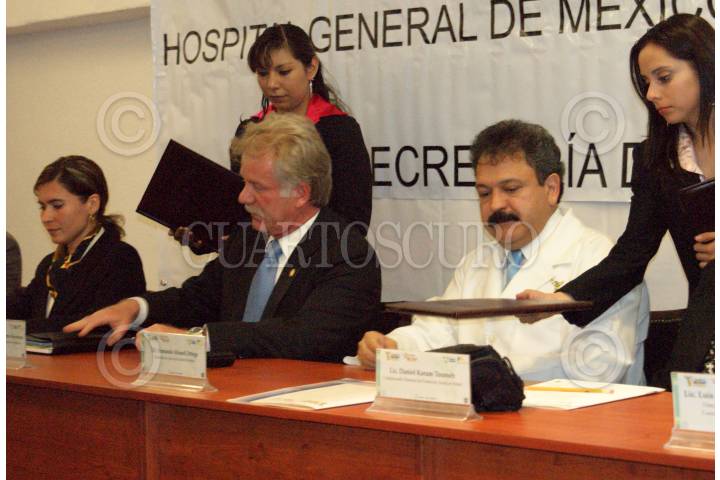 MÉXICO D.F., 03FEBRERO2009.- Francisco P. Navarro director del Hospital General de México y Armando Ahued secretario de Salud del Gobierno de la Ciudad, firmaron un convenio de colaboración para beneficiarios del seguro Popular. FOTO: VICTORIA VALTIERRA/CUARTOSCURO.COM