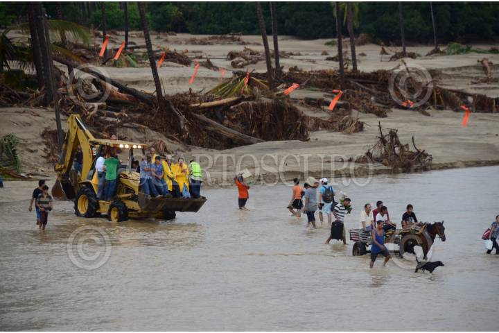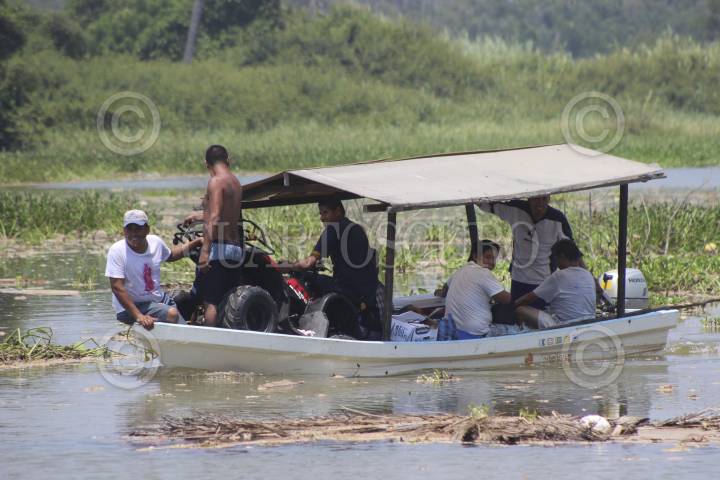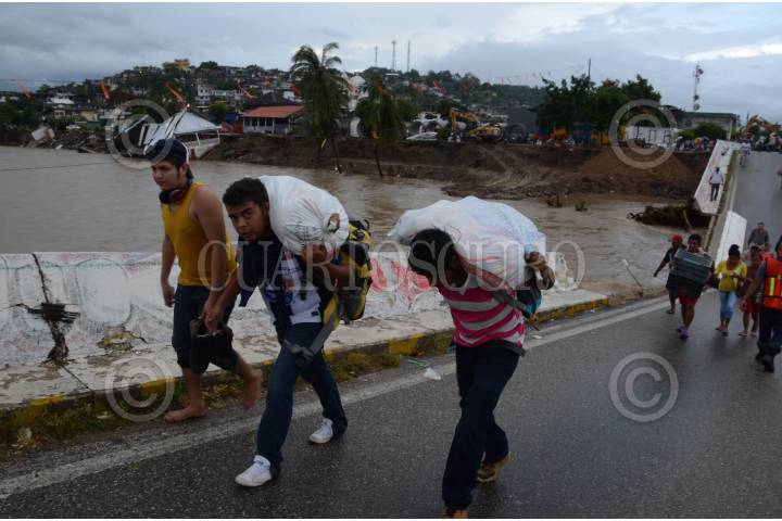 ACAPULCO, GUERRERO., 25SEPTIEMBRE2013.- Pobladores de distintas comunidades afectados por la tormenta Manuel cruzan el rio de Coyuca de Benítez con alimentos y combustible ya que continua el desabasto. FOTO: BERNANDINO HERNÁNDEZ /CUARTOSCURO.COM
