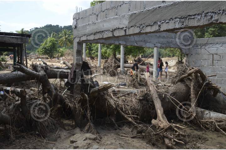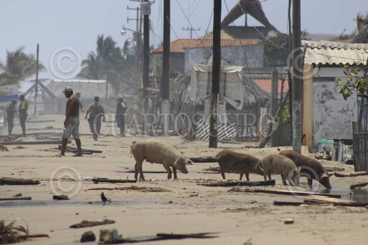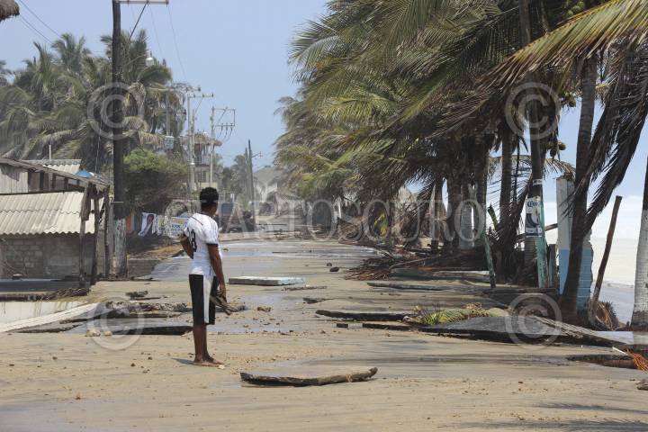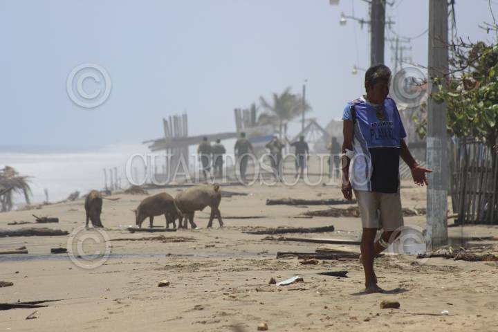 COYUCA DE BENÍTEZ, GUERRERO, 03MAYO2015.- El fenómeno Mar de Fondo con olas de hasta más de diez metros de altura afectó las costas guerrerenses y arrasó con el balneario de Playa Azul, La Barra de Coyuca y Mogotes, en el municipio de Coyuca de Benítez, donde hubo más 40 heridos, restaurantes, casas y bungalows arrasados. Unas 190 familias fueron evacuadas a albergues provisionales de El Carrizal, donde se habilitó la capilla del lugar, y un domicilio particular en San Nicolás, donde elementos de Protección Civil estatal y municipal brindan la atención a los damnificados. El alcalde de Coyuca de Benítez, Ramiro Ávila Morales dio a conocer que están trabajando en la solicitud de declaratoria de zona de desastre a efecto de que el Fonden pueda bajar recursos para atender a los damnificados. FOTO: BERNANDINO HERNÁNDEZ /CUARTOSCURO.COM
