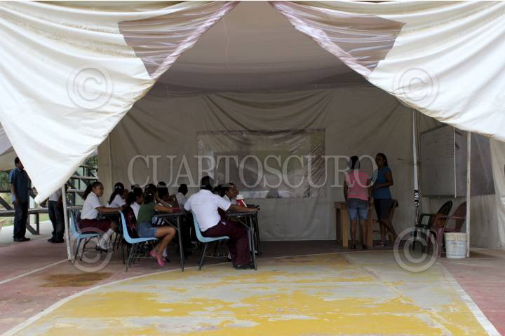 BEJUCO, COYUCA DE BENÍTEZ, GUERRERO, 18AGOSTO2014.- Alumnos de una primaria iniciaron el ciclo escolar en un lugar del pueblo con lonas provisionales. FOTO: BERNANDINO HERNÁNDEZ /CUARTOSCURO.COM