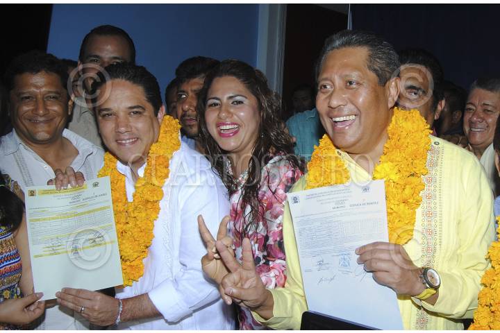CHILPANCINGO, GUERRERO, 09MARZO2015.- Evodio Velázquez Aguirre, se registró el precandidato a la presidencia municipal de Acapulco. Al acto lo acompañó su esposa, y el precandidato a la presidencia municipal de Coyuca de Benítez, Merced Baldovino Diego, ambos por el partido de la Revolución Democrática (PRD). FOTO: JOSÉ I.HERNÁNDEZ / CUARTOSCURO.COM