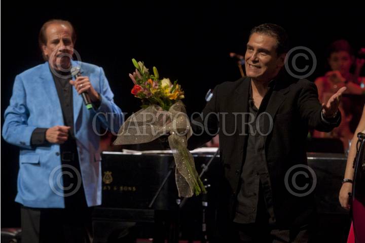 MÉXICO, D.F., 03AGOSTO2012.- El cantante Benito Castro cantó cantó a dueto con del maestro Kiko Campos, la noche de ayer en el Teatro de la Ciudad en el marco del festejo a sus 50 años de trayectoria que le rindió el GDF a los hermanos Castro. FOTO: FRANCISCO RODRÍGUEZ /CUARTOSCURO.COM