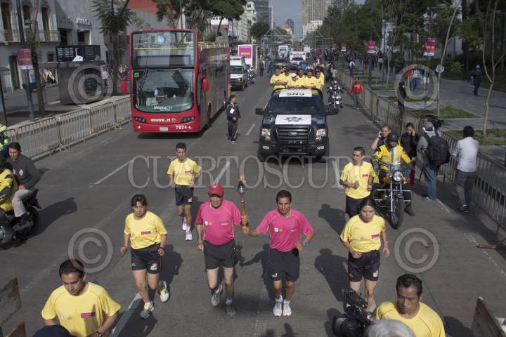 MÉXICO, D.F., 24AGOSTO2013.- Los corredores Rodolfo Gómez y Benjamín Paredes fueron el primer relevo en la ruta de la antorcha que posteriormente incendió el pebetero del estadio Olímpico de CU, esto como preludio de que el día de mañana se celebre el del Maratón de la Ciudad de México, el cual va partir del Hemiciclo a Juárez. FOTO: MOISÉS PABLO /CUARTOSCURO.COM