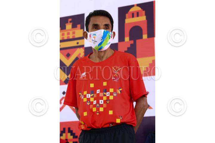 Maratonistas como Benjamín Paredes portan la playera que utilizarán los corredores de la edición XXXVIII del Maratón de la Ciudad de México Telcel 2021.